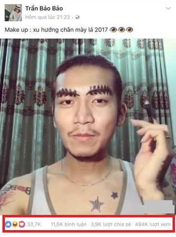 Với nội dung hài hước, clip "chân mày" của BB Trần nhận được gần 500 nghìn lượt xem, 4 nghìn lượt chia sẻ, 35 nghìn lượt thích và hàng chục nghìn lượt bình luận.