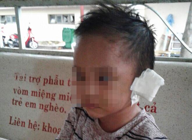 Bé Thân bị thương ở tai, nghi do bạo hành. Ảnh: D.Văn.
