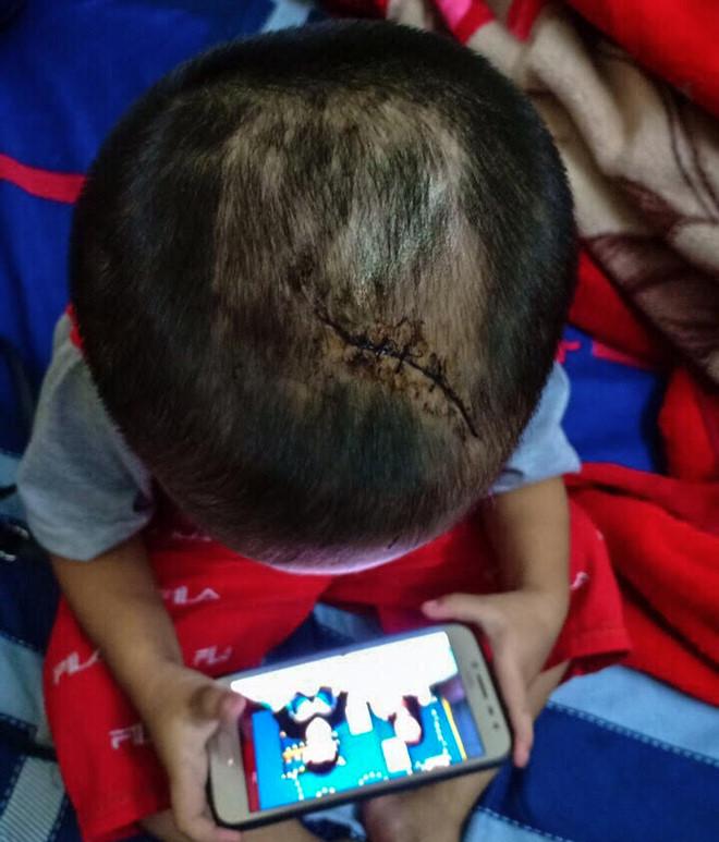 Vết thương trên đầu bé Thân. Ảnh: D.Văn.