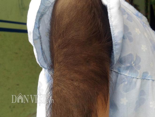 Những bết lông đen và dài lan ra 2 cánh tay của cháu Bích (Ảnh: Chúc Ly)