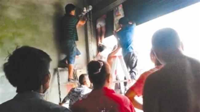 Ngay khi sự việc xảy ra, người dân xung quanh đã nhanh chóng chạy đến ngắt nguồn điện và gọi tới số điện thoại khẩn cấp. Khi lực lượng cứu hộ tới hiện trường, 2 bé gái vẫn bị treo lơ lửng trên không trung, phần đầu và tay đều bị kẹt ở bên trong chiếc cửa cuốn. Bé gái Như Như không có bất cứ động tĩnh gì, còn bé Nguyệt Nguyệt đang yếu ớt giãy giụa 2 chân.