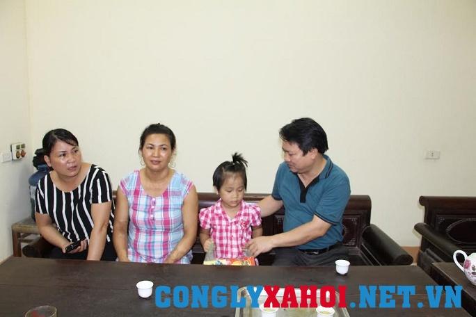 Cháu bé được các cơ quan chức năng huyện Vĩnh Tường thăm hỏi và tặng quà