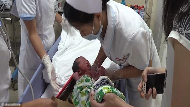 Theo Pear, vụ việc xảy ra ở thị trấn Mai Châu, tỉnh Quảng Đông, Trung Quốc. Theo tin tức từ cảnh sát địa phương cho biết họ tìm thấy em bé trong một bụi cây ven đường. "Rốn vẫn còn dính. Em bé không mặc quần áo và có rất nhiều phân su trong hộp", một sĩ quan cảnh sát nói.