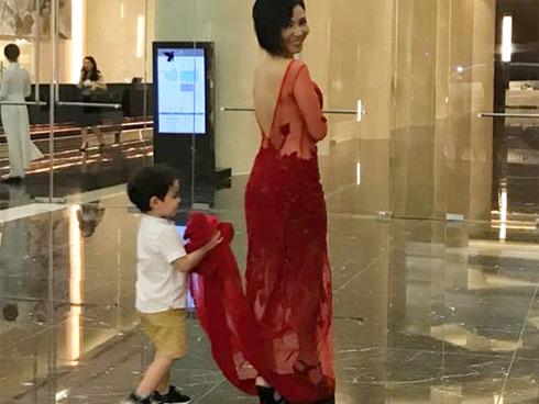 Trước đó không lâu, giọng ca Đường cong cũng khoe hình ảnh con trai theo mẹ đi diễn tại Hà Nội. Đây là lần hiếm hoi khán giả có thể nhìn rõ hơn chân dung của cậu bé sau 3 năm được vợ chồng nữ ca sĩ giấu kín.