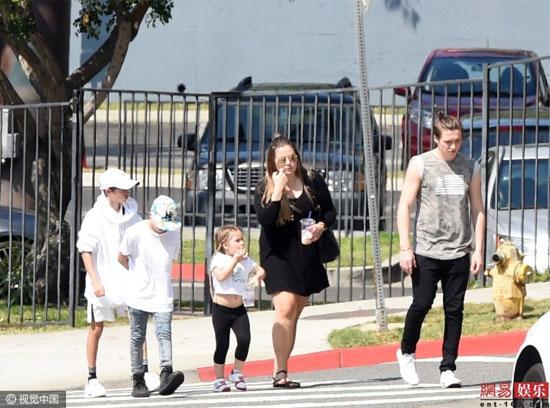 Bé Harper điệu đà với crop top và tóc tết đi chơi cùng các anh trai.