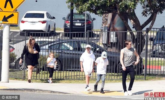 (2Sao) - "Công chúa" nhà Becks - bé Harper điệu đà với tóc tết mái đi chơi cùng các anh trai.