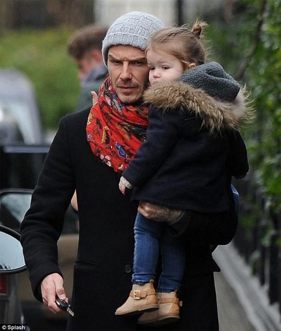 Bé Harper được bố rất cưng chiều luôn bế trên tay.