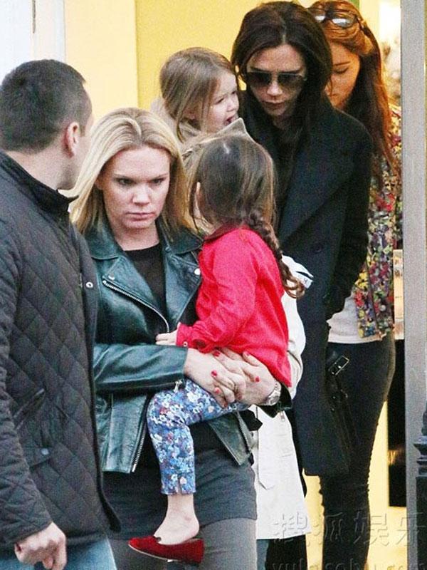 Mới đây, giới truyền thông bắt gặp bé Harper được mẹ Victoria đưa đi mua sắm tại London. Đi cùng với bà mẹ 4 con còn có em gái của cô là Louise. Vốn là một trong những người đẹp mê giày cao gót tuy nhiên lần này Victoria Beckham lại chọn cho mình đôi giày bệt cá tính, trong khi đó bé Harper mặc áo khoác, quần jeans bó và bốt cao cổ, xõa tóc. Càng lớn bé gái nhà Becks càng dễ thương và lần này đi với mẹ cô bé còn ngậm cả núm vú trông rất yêu.