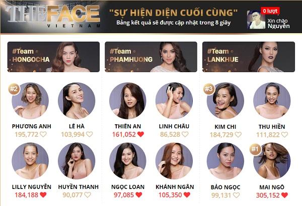 Từ khi bảng bình chọn được mở, Mai Ngô luôn là thí sinh có lượng vote cao nhất. Sau khi Mai Ngô bất ngờ bị Phạm Hương loại khỏi cuộc thi, lượng vote của Mai Ngô lại ngày càng tăng lên cao vút. Nếu tình hình vote vẫn ổn định hoặc tiến triển tốt như thế này, fan Mai Ngô hoàn toàn có thể đưa thần tượng tiến thẳng vào đêm chung kết xếp hạng để tranh giải quán quân.