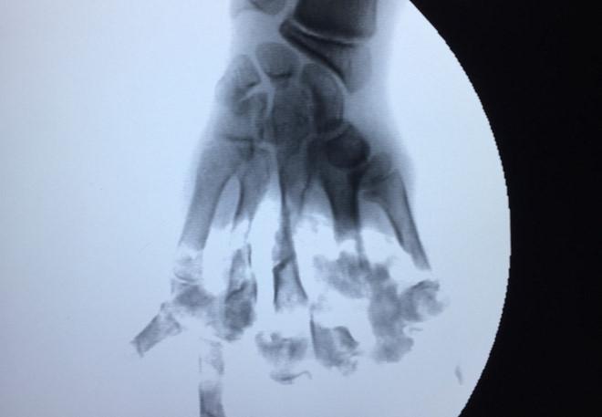Hình ảnh phim chụp bàn tay của nạn nhân. Ảnh: Tùng Chi.
