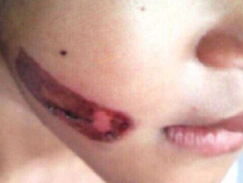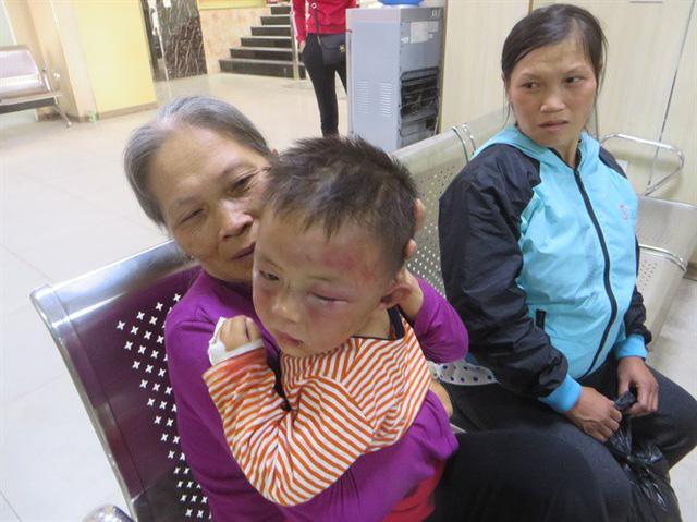 Khuôn mặt cháu H. bị thâm tím trông rất đau lòng.