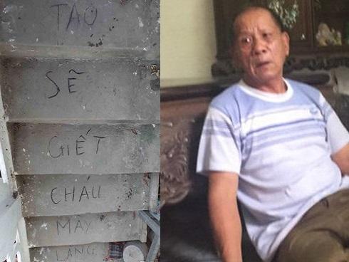 Được biết, tối qua cháu bé ngủ cùng bố mẹ ở buồng tầng 1, tại bậc thang ở ngoài trời từ tầng 1 đến tầng 2 có dòng chữ "TAO SẼ GIẾT CHÁU MÀY LĂNG".