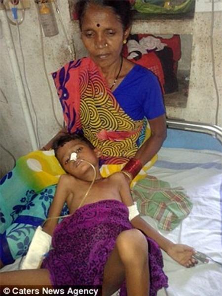 Keshav Sahu 5 tuổi đang hồi phục tại bệnh viện sau khi bác sĩ lấy ra một chiếc bàn chải đã ở trong bụng cậu bé 1 năm.