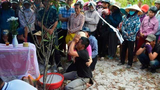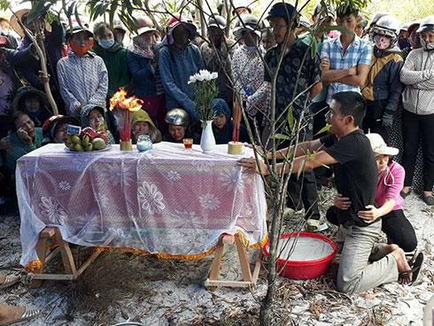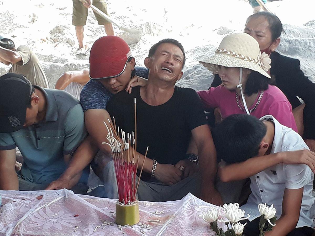 Giữa cồn cát mênh mông chỉ có những tiếng khóc xé lòng. Trước quan tài con trai, anh Ất cứ quỳ lên lại ngã xuống rồi liên tục gọi tên con: “Sao lại khổ thế này con ơi, ba có làm gì nên tội với ai đâu mà giờ đầu bạc tiễn đầu xanh thế này. Con còn nhỏ quá, con có tội tình gì đâu…”.