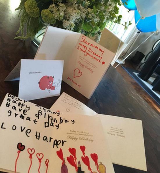 Bên cạnh Becks, Vic còn nhận được những món quà rất ý nghĩa từ các con. Brooklyn, Romeo, Cruz và công chúa nhỏ Harper mỗi người tự viết một tấm thiệp để gửi lời chúc sinh nhật tới mẹ.