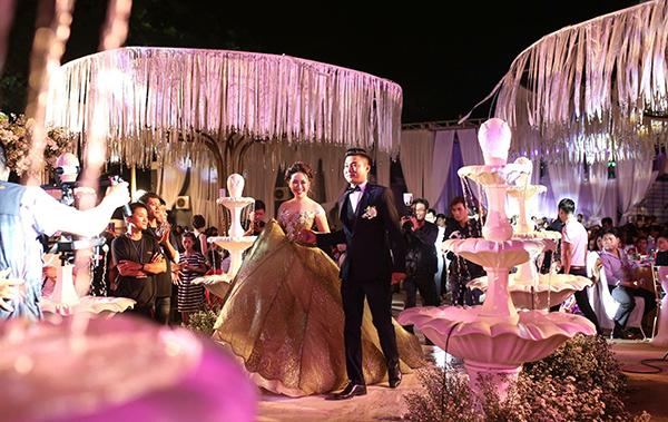 Tân nương xuất hiện trong bộ soiree bồng bềnh như công chúa sánh bước bên chú rể.