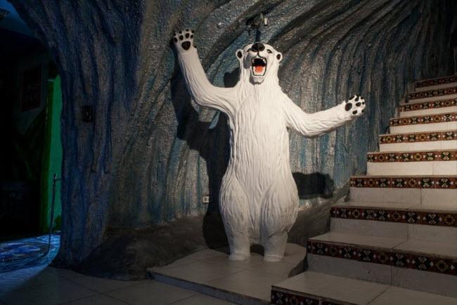 Tượng gấu Bắc cực chào khách tới thuê phòng tại khách sạn tình dục Kiss Me.