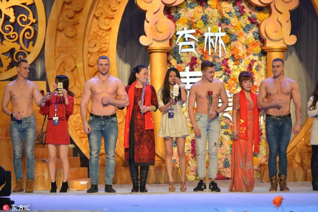 Ngoài những tiết mục thường thấy, trong bữa tiệc được phát trực tiếp trên mạng xã hội này còn có sự xuất hiện của dàn trai đẹp người phương Tây, thu hút sự chú ý rất lớn của dư luận Trung Quốc.