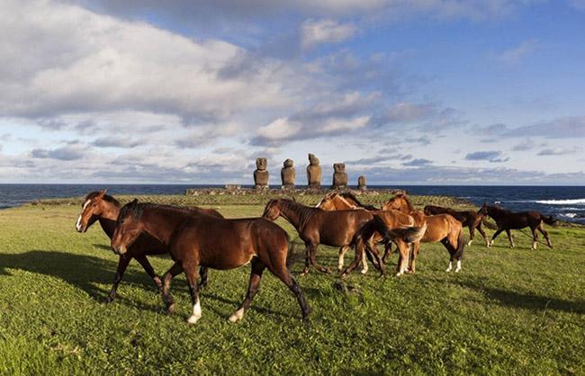 Loài ngựa được đưa tới Rapa Nui vào khoảng thế kỷ thứ 19. Hiện nay, trên toàn bộ đảo Phục Sinh có khoảng 6000 con ngựa, nhiều hơn số lượng người đang sinh sống trên đảo. Loài ngựa ở đây thuần, gần gũi với con người và có bộ lông mượt cũng như rất khoẻ. Bạn hoàn toàn có thể dễ dàng bắt gặp những chú ngựa này ở gần các Ahu Moai