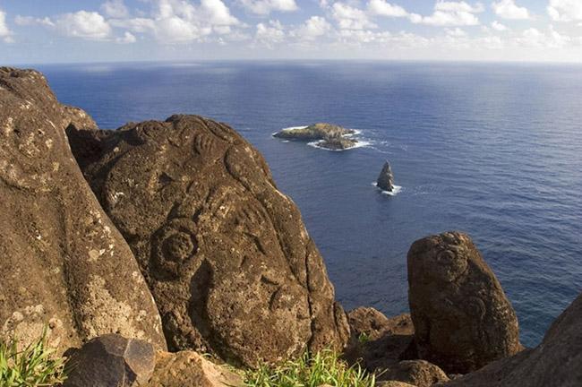 Nhìn ra phía ngoài của tòa nhà Mata Ngara'u, nơi xa xưa các linh mục thường tiến hành nhiều nghi thức tế lễ quan trọng có tới 1700 tảng đá được khắc các hình khác nhau bao gồm: người chim, các vị thần, biểu tượng của giống nòi...