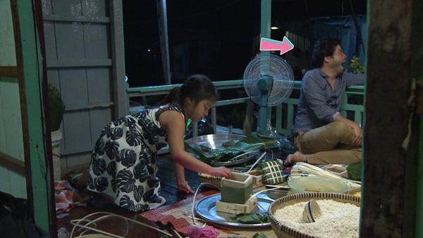 Trong khi mọi người đang miệt mài "sản xuất" bánh chưng thì bố con nhà Chíp
