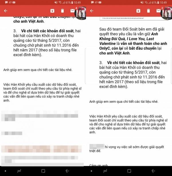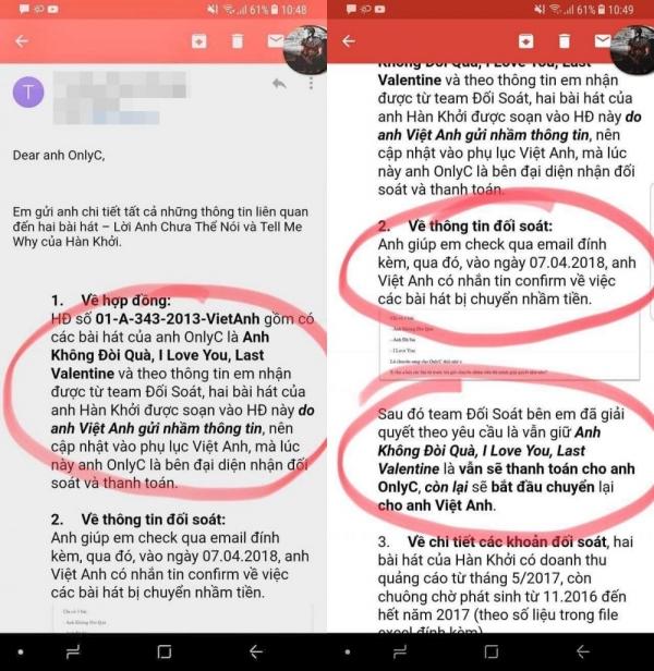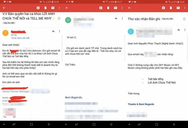 Only C cung cấp mail xác nhận sự nhầm lẫn 2 bài hát của Hàn Khởi trong hợp đồng làm việc