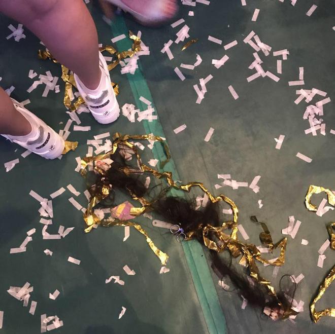 Phần tóc bị cắt rơi vãi tại khu đứng của concert.