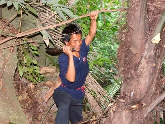 Khoảnh khắc người đàn ông nhổ cỏ dại ăn ngon lành.