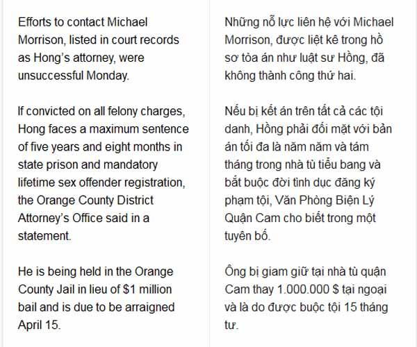 Sau khi nêu rõ về vụ việc, Dũng Taylor cũng chia sẻ ý kiến của luật sư: Luật Sư Nguyễn Hoàng Duyên, một luật sư hành nghề lâu năm tại San Jose, miền Bắc California, cho biết, “Cả ba tội nêu trên đều là tội hình sự. Nếu bị kết tội thứ nhất, tùy theo cấp độ nghiêm trọng mà người này có thể bị xử ở tù tiểu bang từ 5 năm, 8 năm hoặc 10 năm. Nếu bị kết tội thứ hai, cũng tùy theo cấp độ nghiêm trọng mà ở tù tiểu bang từ 5 năm, 7 năm hoặc 9 năm. Và nếu bị kết tội thứ ba, thì bị tù từ 2 năm, 3 năm hoặc 4 năm, cũng ở tù tiểu bang.” Cũng theo Luật Sư Duyên, “Một người ngoại quốc sang Mỹ và phạm tội ở Mỹ thì hình phạt cũng y như công dân Mỹ, theo luật Mỹ, không có ngoại lệ. Sau khi mãn án sẽ bị trục xuất và không bao giờ được đặt chân tới Hoa Kỳ.” Theo hồ sơ từ Tòa Án Thượng Thẩm California, ngày ra tòa là thứ Sáu, 15 Tháng Tư, lúc 10 giờ sáng tại Central Jail, Santa Ana. - Theo nguồn tin của báo Người Việt.