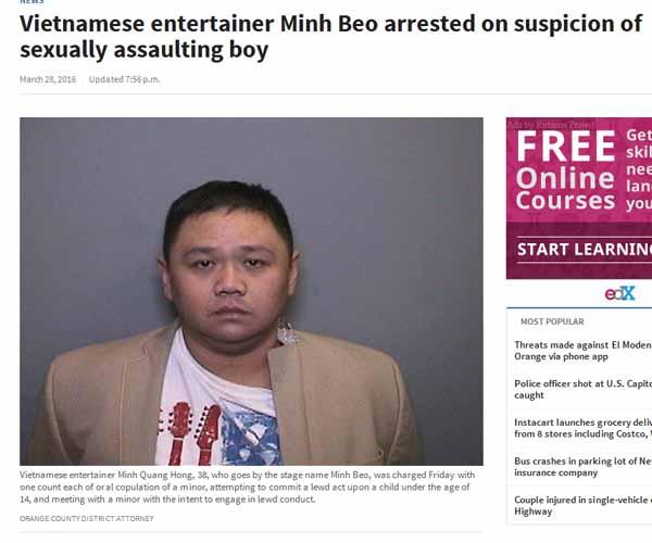 Theo thông tin mới nhất từ tờ OC Register, Minh Béo bị buộc vào 3 tội danh về xâm phạm và quấy rối tình dục trẻ em. Hiện, Minh Béo đang bị giam giữ tại nhà tù Theo Lacy của bang California. Và theo yêu cầu, gia đình Minh Béo phải trả khoản tiền 1 triệu USD (tương đương 22 tỷ VNĐ) nếu muốn nam danh hài được tại ngoại trong thời gian điều tra và chờ ra tòa.