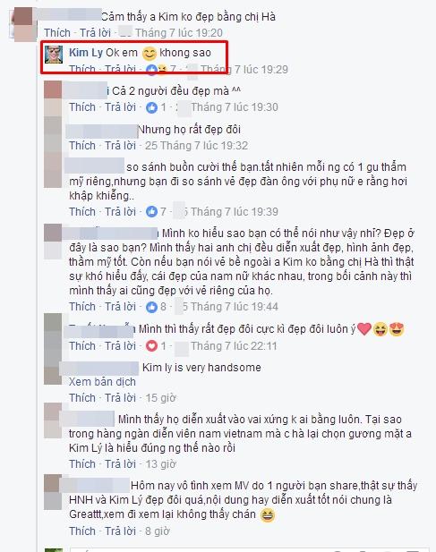 Một Facebooker mạnh dạn cho rằng Kim Lý không đẹp bằng Hồ Ngọc Hà. Tưởng vô can, nam diễn viên Hương Ga thẳng thắn đáp trả: "Oki em, không sao". Câu trả lời của Kim Lý nhận được nhiều sự ủng hộ. Số đông cho rằng lời nhận xét này mang tính phiến diện, bởi phụ nữ và đàn ông mỗi người mang vẻ đẹp khác nhau.