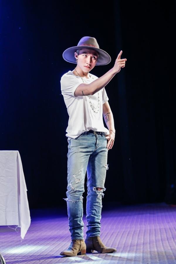 Nói tới đây, nam ca sĩ vội vàng bị MC “chặt ngọt”: “Bạn cứ khéo đùa, tôi thấy bạn rất giỏi vừa có thể làm ca sĩ, vừa có thể làm diễn viên thậm chí là đạo diễn luôn ấy. Nãy giờ toàn bạn dẫn dắt chương trình thôi!”.