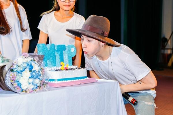 Phần cuối của buổi họp fan tại Huế vỡ òa trong xúc động khi nam ca sĩ lại một lần nữa nhận được bánh kem mừng sinh nhật muộn của các Sky. Chiếc bánh kem có chữ M-TP cực đẹp mắt kèm theo đó là nón lá đặc trưng của xứ Huế và gấu bông. Ngay lập tức, Sơn Tùng đội chiếc nón lá có in chữ “Sky Huế yêu Sơn Tùng” và chia sẻ rằng: “Nhìn chiếc nón lá Tùng lại nhớ bà ngoại, người đã chăm Tùng từ khi còn bé tí. Mong rằng bà sẽ luôn ở bên che chở cho con”.