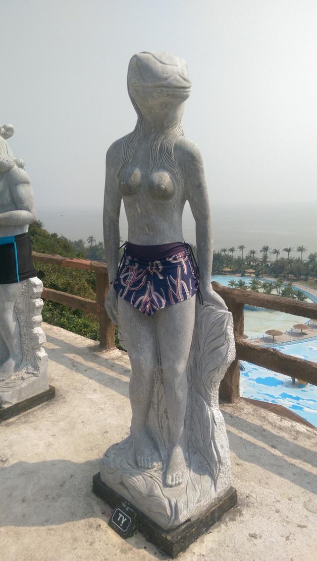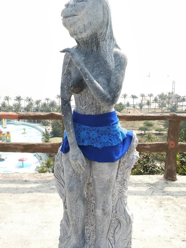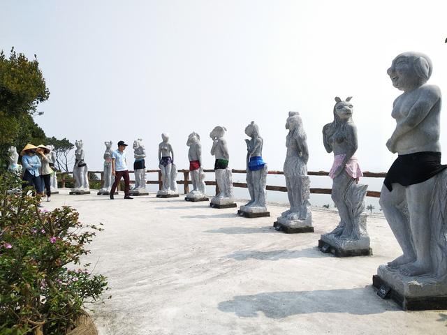 Trước những ý kiến khen chê trái chiều, hiện tại phía công ty du lịch Hòn Dấu (Hải Phòng) đã cho mặc quần áo lên các bức tượng.