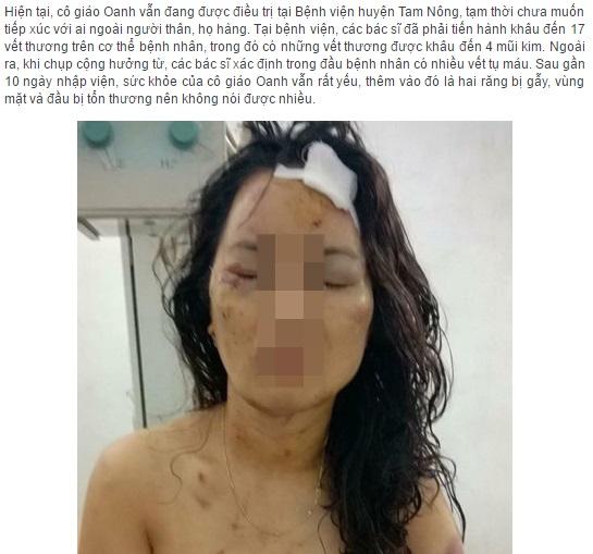 Tiểu học Minh Hòa, huyện Yên Lập, Phú Thọ) bị chồng cũ bạo hành nặng nề