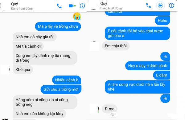 Những tin nhắn giữa Nguyên và người bạn tên Quý chứng minh Nguyên không phải là người ăn cắp cây hồng cổ nói trên. Bức ảnh anh chia sẻ trên trang cá nhân là do một người bạn gửi đến. Chính bản thân anh cũng tỏ vẻ tiếc nuối khi cây hồng cổ bị đánh cắp. (Ảnh: nhân vật cung cấp)