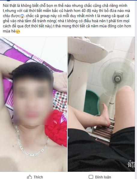 Mới đây, tài khoản FB.N.Đ.C đã chia sẻ trên mạng xã hội cách chống nóng “độc nhất vô nhị của mình. Chẳng là nhà anh chàng không có điều hòa mà thời tiết Hà Nội lúc này quá nóng. Anh ta mới nảy ra ý định mang cả ghế, cả quạt vào nhà tắm ngủ với hy vọng sẽ bớt được phần nào sự khó chịu của cái nắng oi ả mùa hè.