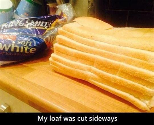 Làm sao mà lại có thể cắt dọc bánh mì thế này? (Ảnh: Internet)