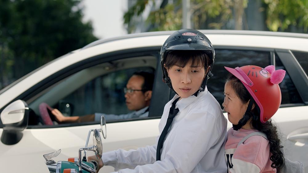 Mở đầu, teaser “Nắng 3”, Quế Phương (Khả Như) gây ấn tượng với bộ dạng nam nhi bên cạnh cô con gái lém lỉnh Hồng Ân (bé Ngân Chi).