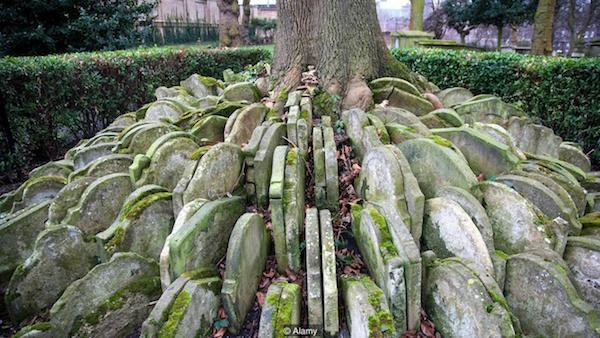 Vậy những người chết giờ an nghỉ ra sao? Một số nằm dưới từng bia mộ xếp tăm tắp trong nghĩa trang một nhà thờ nào đó, số còn lại thì không. Tại thánh đường St Pancras, các tấm bia xếp từng lớp từng lớp dưới gốc một cây cổ thụ. 31 chiếc vòng trong, 16 chiếc vòng ngoài. Phía dưới, là đường ray tàu chạy thẳng tới châu Âu.