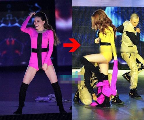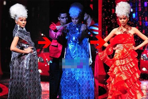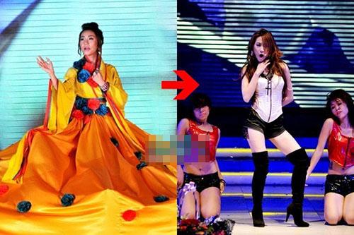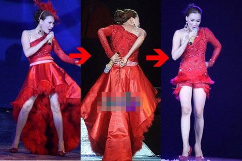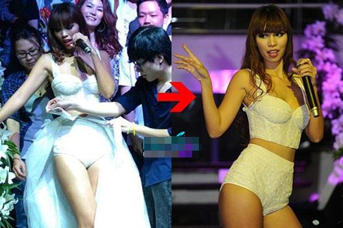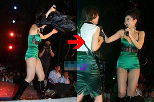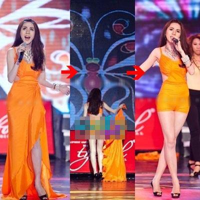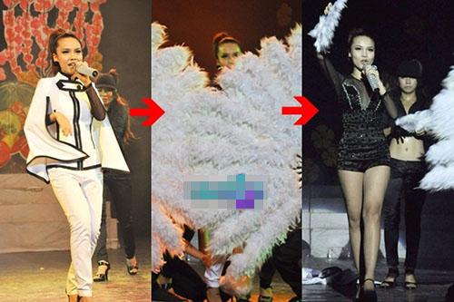 Nhiều mỹ nhân Việt chọn cách "tự trút xiêm y" ngay trên sân khấu, tất nhiên là đối với những bộ đồ dễ cởi, không quá rườm rà.
