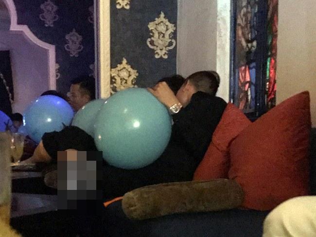 Kỳ Duyên và bạn trai hít bóng cười trong bar năm 2016.