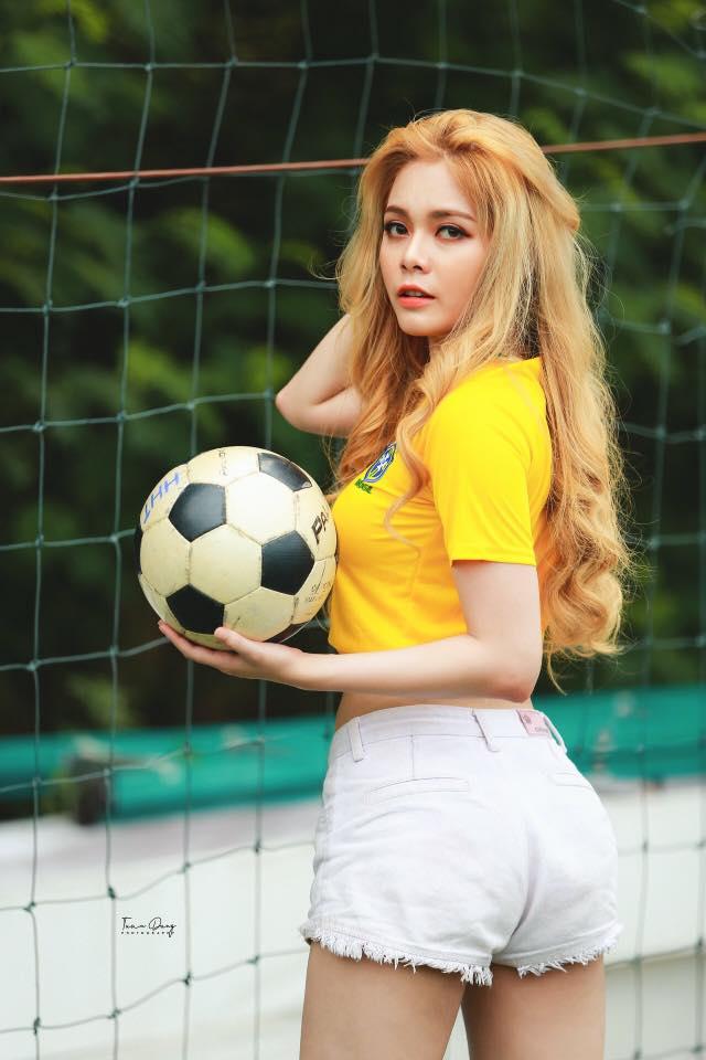 Khi được hỏi xem đội Brazil từ bao giờ, hot girl này tự tin trả lời: "Từ khi em còn học cấp 1, nghĩa là vào những năm 2000, 2002. Thế hệ của Ronaldo, Ronaldinho, Pele ...”.