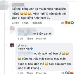 Cụ thể, có anti-fan đã để lại bình luận trên tường nhà H’Hen Niê rằng: "Biết nói tiếng Anh không mà đi nước ngoài liên miên? Mình nghĩ là nên dành thời gian đi học tiếng Anh thêm nhé".