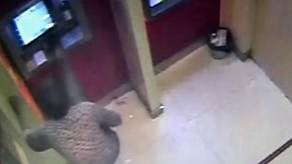 Bị nuốt thẻ, người đàn ông dận giữ đá máy rút tiền, lấy thùng rác đập, sau đó tiếp tục nhặt mảnh vỡ dưới sàn, ném về phía máy rút. Kết quả, màn hình máy rút tiền bị hư hỏng năng còn người đàn ông này bị nhận án phạt 15 ngày giam giữ hành chính