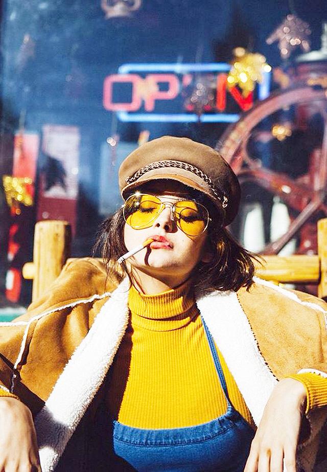 Ở vào hoàn cảnh này, áo khoác đã không còn là trang phục nữa rồi. Chúng trở thành món đạo cụ để phái đẹp tha hồ tạo dáng. Đừng mặc chúng một cách nghiêm túc đúng công thức. Hãy thả hờ trên vai hay buông lơi để tạo ra sự phá cách, hoang dã cho bức ảnh.