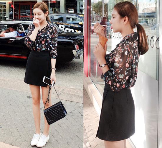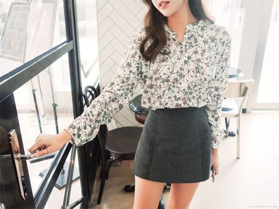 Một chiếc áo sơ mi hoa mix cùng chân váy chữ A là style hẹn hò lý tưởng bạn không nên bỏ qua dịp cuối tuần. Áo hoa đã nổi bật bởi vậy chân váy bạn chọn nên có tông màu đơn sắc, màu trầm như đen, ghi xám, be...