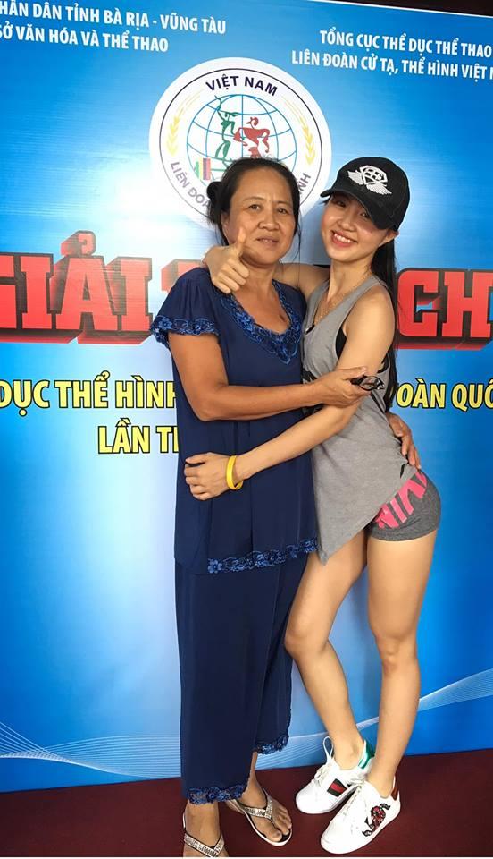 HLV Anh Túc cùng mẹ trong buổi thi đấu ở Vũng Tàu.