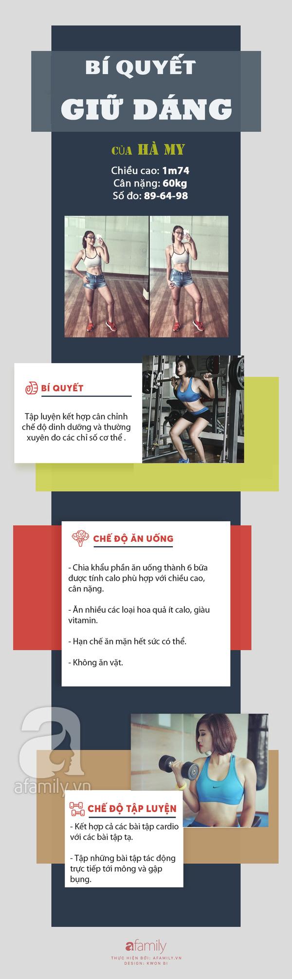 My kể, đã lâu lắm rồi cô không quá quan trọng cân nặng nữa. Để giữ dáng không sai 1 cm sau 3 năm, My thường xuyên đo các chỉ số cơ thể vào các thời điểm nhất định để biết cơ thể thay đổi ra sao, từ đó điều chỉnh bài tập cũng như chế độ dinh dưỡng phù hợp hơn ngay lập tức là không lo mất dáng.
