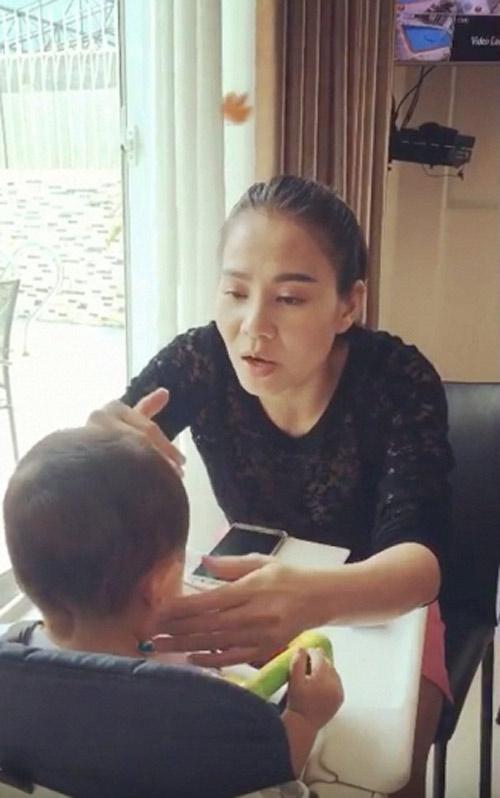 Bây giờ nó bướng, không chịu ăn, chạy vòng lòng rồi đập phá, làm bừa bãi tất cả tất cả đồ chơi, quần áo này nọ... trong khi đó tôi lại là người rất ngăn nắp, sạch sẽ và chỉn chu. Nhưng bây giờ sáng mở mắt ra là đi dọn, mở mắt ra là nghĩ con ăn cái gì? Nó mà không ăn là nguyên ngày hôm đó bị stress, bị điên. Sau đó là nghĩ đủ thứ chuyện", nữ ca sĩ trải lòng.